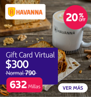 Con esta promo recibida, podemos obtener un descuento de 20% sobre las millas requeridas para hacer canjes en el catálogo Latam. Ojo, es solo para algunos comercios… entre otros encontramos: