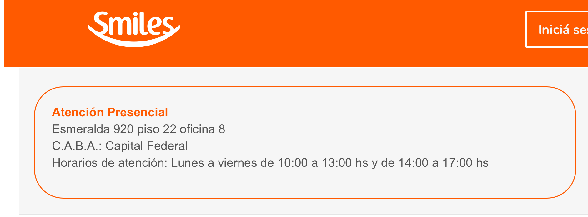 Buenos Aires, 5 de diciembre de 2023 – Smiles Argentina, el programa de millas, anunció la apertura de su primera oficina de atención a la cliente ubicada en la Ciudad de Buenos Aires. La misma, estará en el barrio de Microcentro, en Esmeralda 920, piso 22, oficina 8.